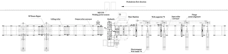 3-in 1 h hade soldadura lerroak HAM, T-habeen muntaketa, soldadura eta brida deformazioaren funtzio konbinatua da soldadura ondoren. Horrela, HAM eta T Beam Ekoizpena zehaztasunez eta azkar gauzatu daiteke. Abantaila hauek ditu: funtzionamendu sinplea, lan kostu txikiagoa eta estalki txikia.